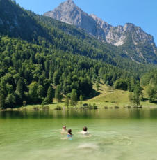 Vor einer Bergkulisse zu schwimmen ist ein großer Spaß. Apropos Spaß: