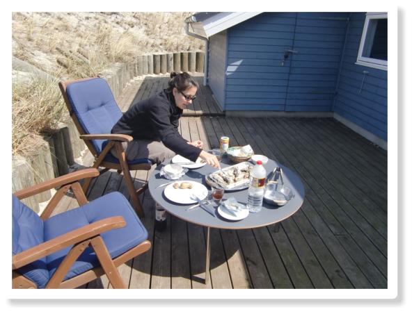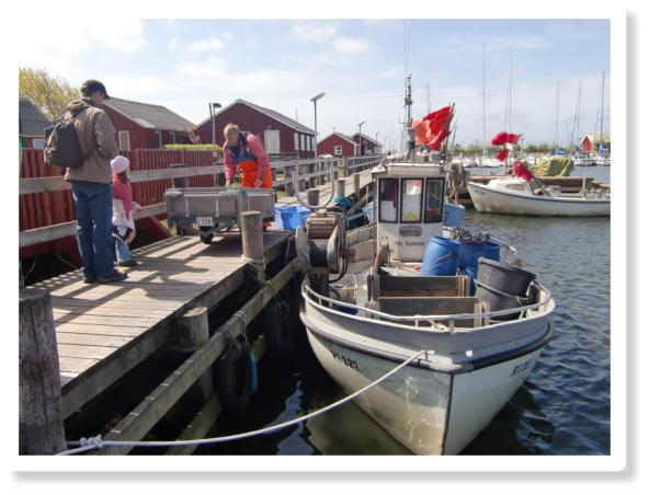 einen schönen sonnigen Platz im Cafe Marina und bestellen dort einen Fischteller. Bevor es zurück nach Bjerregard geht,