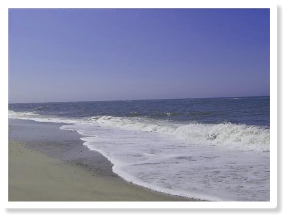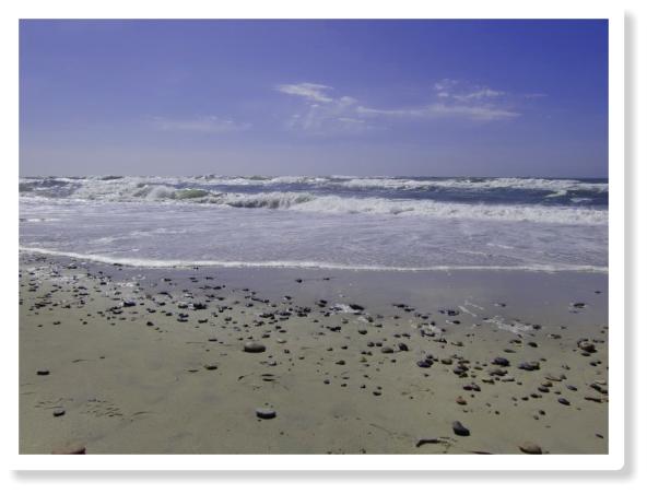 nur kleine Wellen an den Strand. Begleitet vom Rauschen und Tosen genießen wir den außer uns menschenleeren Strand.