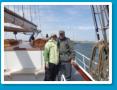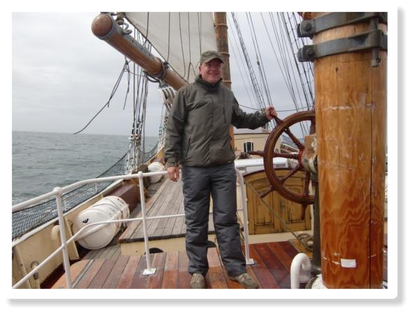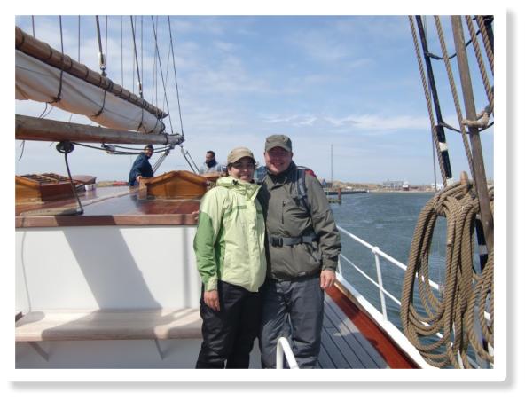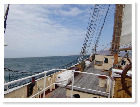 gebrochenem deutsch sein Seemannsgarn, während sich der Rest der 4-köpfigen Crew um Taue und Segel kümmert. Dies