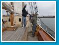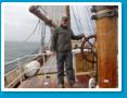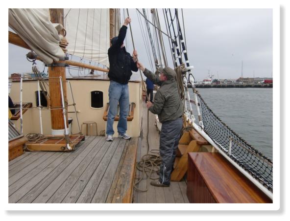 frischer, teils kräftiger Wind, als Kapitän Jakob Jenssen Kurs auf die Nordsee nimmt. Ahoi. Beim Setzen der Segel dürfen