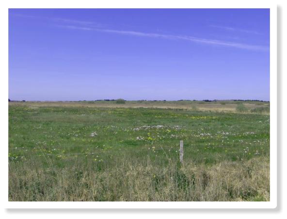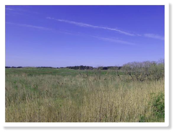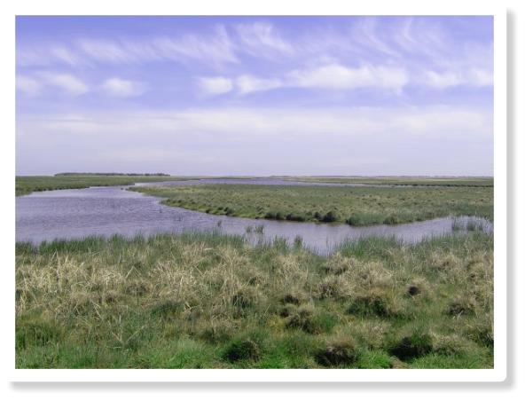 geprägt und so ein wahres Vogelparadies. Landschaft, soweit das Auge reicht. Nur ganz entfernt sind einige Höfe und