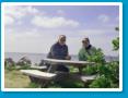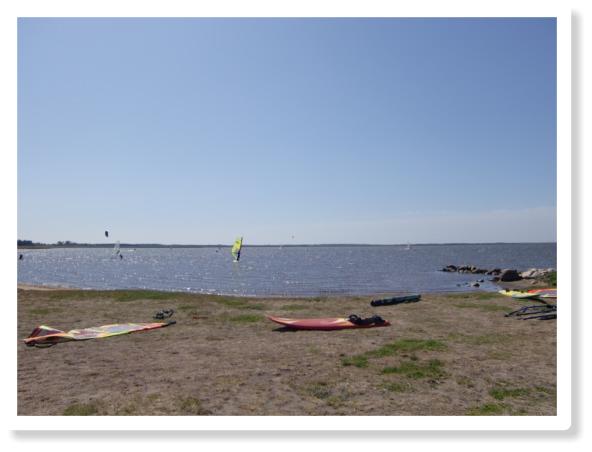 auf einer Bank am Hafen schmecken. Dabei beobachten wir das bunte Treiben der sportbegeisterten Wind- und Kitesurfer.
