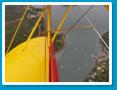 Doppeldecker. Mit einer Körperdrehung erklimmen wir den engen Vordersitz unter dem Dachflügel. Der Pilot hat seinen