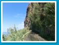 zahlreichen Schluchten durchzogen wird. Die schmale, steile Straße schlängelt