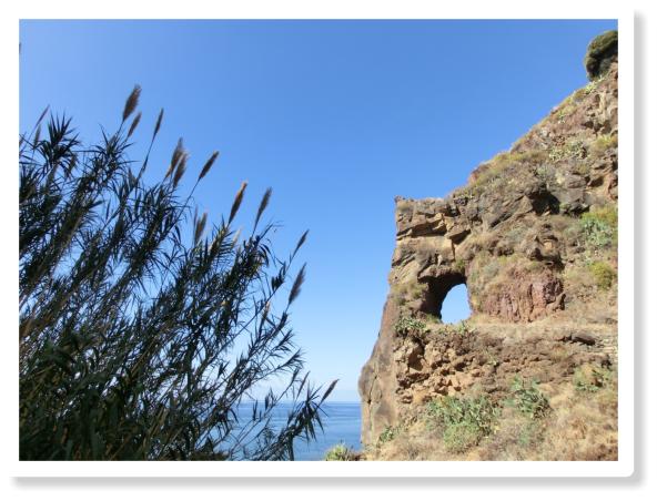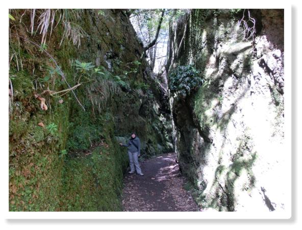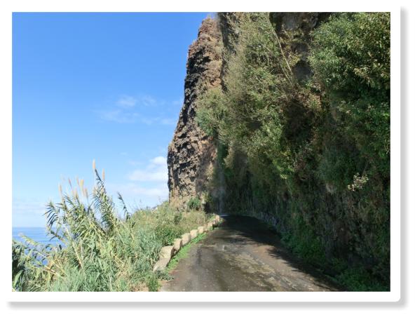 Madeira-Bommelmützen, die es natürlich auch zu kaufen gibt. Weiter geht es an der Levada entlang. Eine Felsscharte wird