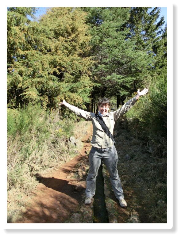 lange Zeit am “Levada do Furado” entlang und führt durch alten Waldbestand. An einer Waldhütte strickt eine alte Frau
