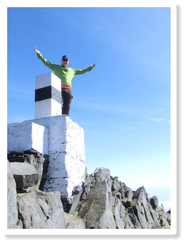 die letzten Meter hoch. Dank klarer Sicht ist der Ausblick grandios. Wir laufen einige hundert Meter den Wanderweg zum