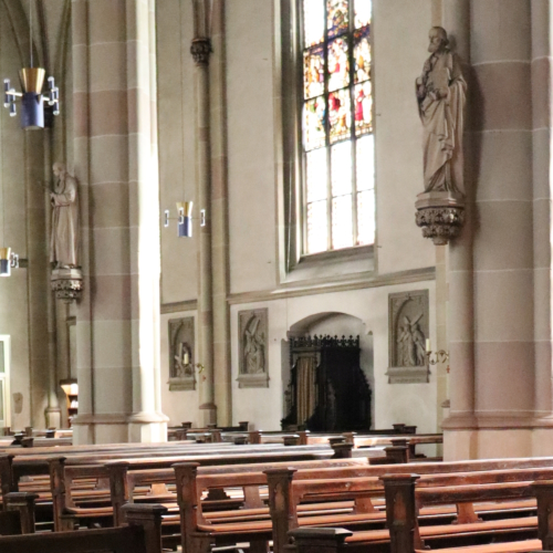 St. Liebfrauen, Münster 1874 erhielt das Chorgestühl geschnitzte Figuren. Der Chor wurde 1877 mit Apostelfiguren ausgestattet. [mehr]